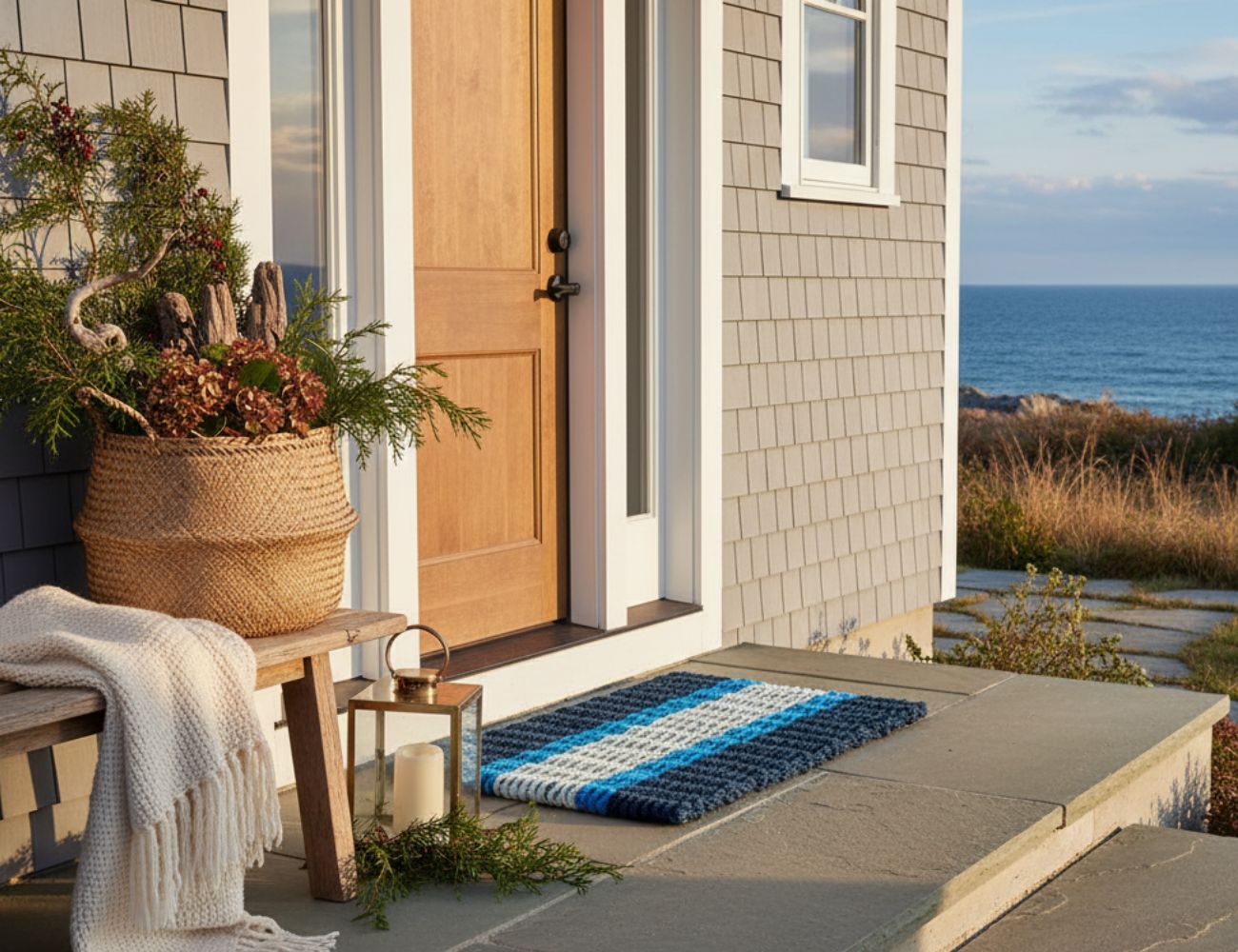 Each handwoven right here on the coast of Maine, these beautiful front door mats lend an elevated coastal charm to your home.