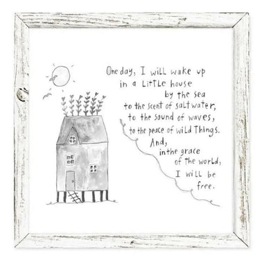 The heartfelt message—"One day, I will wake up in a little house by the sea, to the scent of saltwater, to the sound of waves, to the peace of wild things. And, in the grace of the world, I will be free."—captures the soul of anyone who has ever longed for a simpler, more peaceful existence. It speaks directly to the heart, and whenever someone sees this piece, they can’t help but pause and feel that pull toward the ocean's quiet beauty.