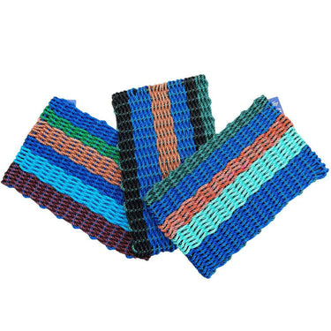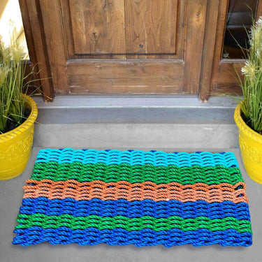 As Seen on NBC's Today, HGTV Magazine, Better Homes & Gardens and ArchitecturalDigest.com. Available for a limited time and quantities are very low. The "Colors of Maine" Recycled Lobster Rope™ Doormat features a delightfully random array of scrap rope & recycled Lobster Rope™ once used to tether buoys to lobster traps in the sea. Full of character and vivid in color, these new doormats are handwoven in Maine using the ropes we currently have available.