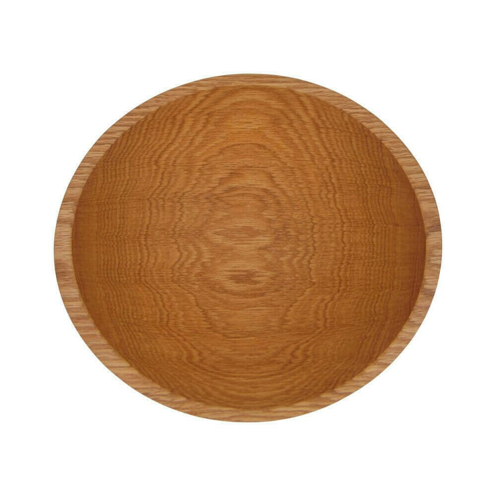 Handcrafted from a single piece of solid red oak, this 12 inch Red Oak wooden salad bowl features beautiful natural grain patterns. Hand-turned, hand-sanded, and hand-rubbed in all natural bee's wax oil to enhance the beauty of its natural wood grain. These wooden bowls are never stained or treated with chemicals, and are food-safe.