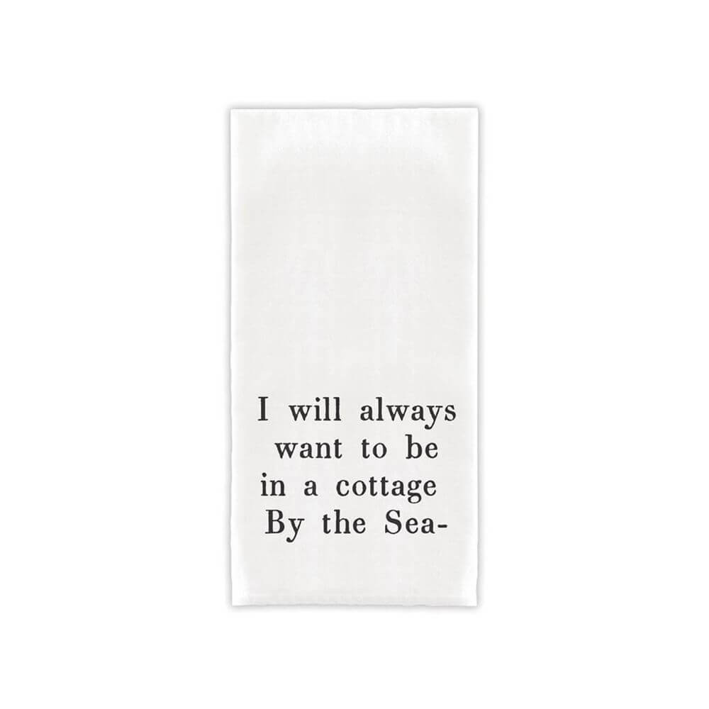 Whether you're brewing your morning coffee, prepping Sunday supper, or packing a picnic for the beach, this towel is up for the task. The charming script design celebrates the dream of a cozy cottage by the sea, adding a thoughtful coastal accent to your home. Machine washable for easy care, it’s as durable as it is delightful.