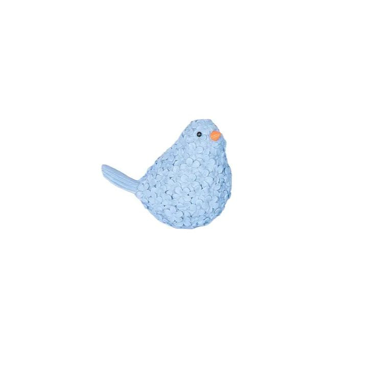 This charming blue bird brings color and texture to your spring decor. Features a raised floral detailing that gives depth and dimension, along with a hand-finished look.
