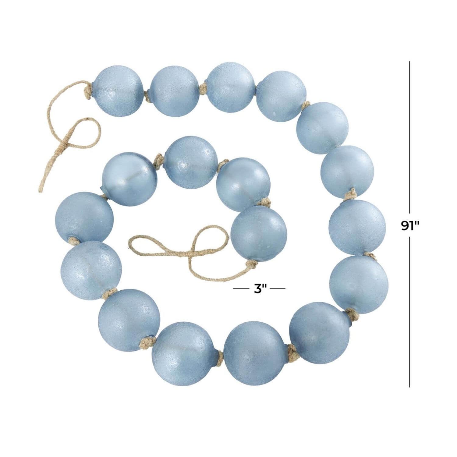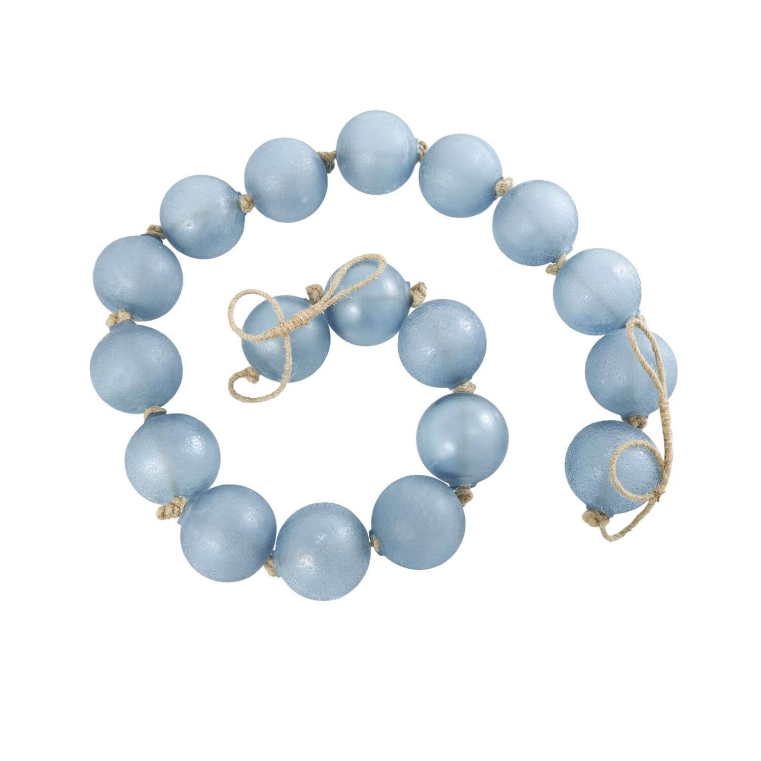 Inspired by the blissful serenity of shoreline mornings, the 91" Frosted Glass Beaded Garland in Soft Blue evokes the easy grace of coastal living. With its subtle hues and organic texture, this oversized garland brings effortless charm to your home—draped across a mantel, resting in a bowl, or winding along a staircase for a touch of sculptural beauty.