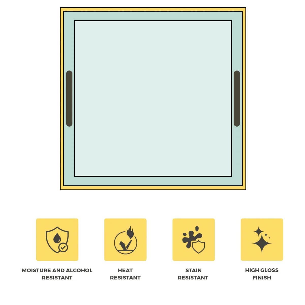 Crafted from Medium-Density Fiberboard (MDF), a sustainable material made from recycled wood fibers, this tray offers the strength of solid wood while being more resistant to warping or cracking. The FSC-certified MDF ensures responsible forestry practices, making this an eco-conscious choice. This certification ensures that the forests are harvested in a way that protects the environment and preserves biodiversity. Designed for heat resistance up to 225°F, it’s safe for serving hot dishes and drinks, while its moisture and alcohol resistance protects against spills—maintaining its beauty for years to come.