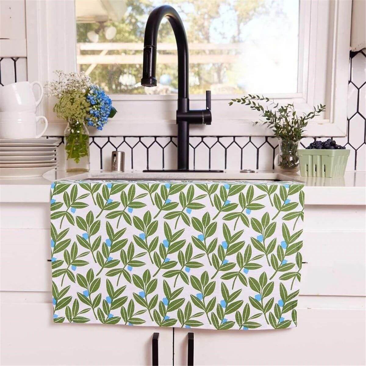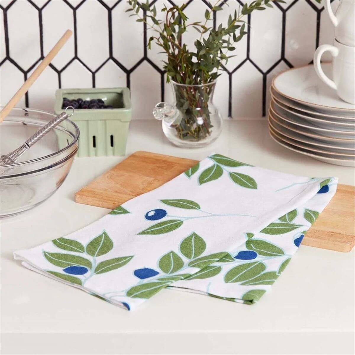Elevate your kitchen with the Blueberry Medley Cotton Kitchen Towel Set, a luxurious blend of style, sustainability, and superior functionality. Designed with intricate botanical blueberry patterns in rich blues and greens, these towels bring a fresh, organic touch to your space. Crafted from 100% cotton, including 45% recycled fibers, they’re not just soft but highly absorbent, making them perfect for drying dishes, wiping spills, or handling everyday kitchen tasks with ease.