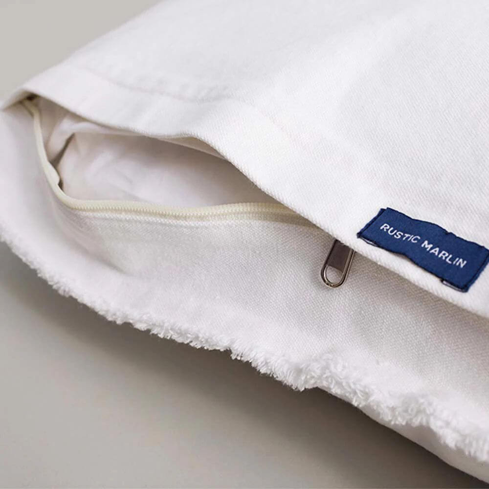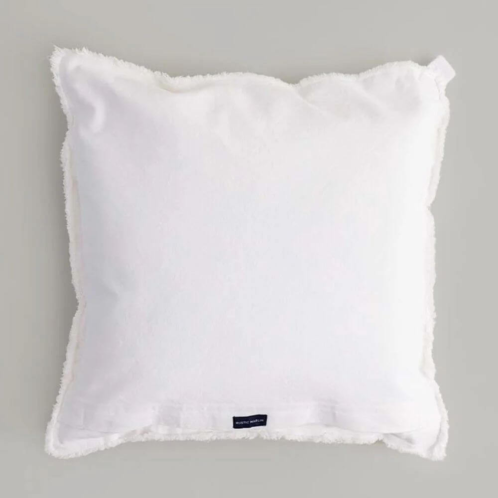Each pillow is handmade in New England and intentionally "perfectly imperfect," offering the kind of character that can’t be replicated in mass-produced pieces. Finished with delicate fringe trim and a relaxed, coastal palette, it’s a piece that feels at home anywhere—by the ocean or simply inspired by it.