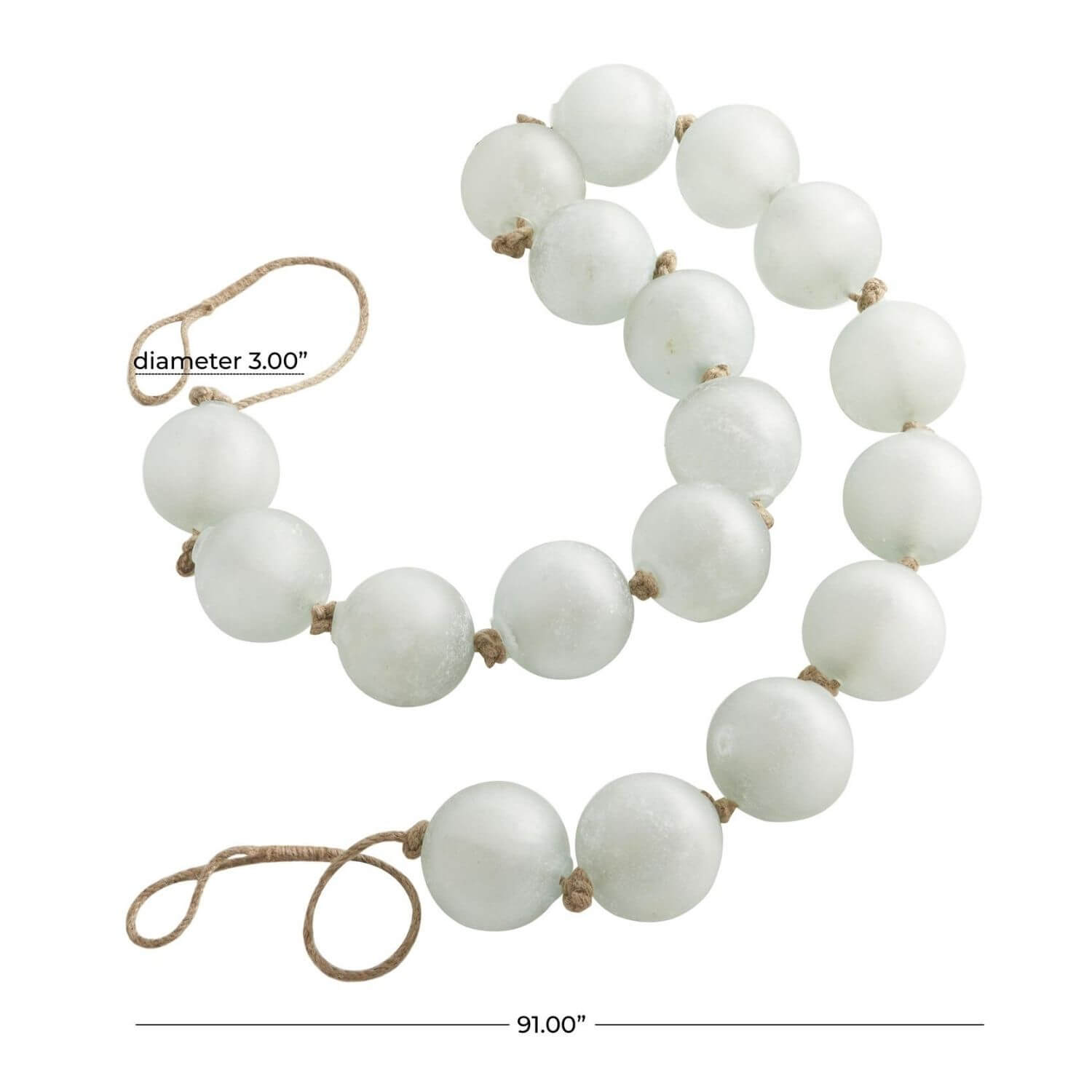 Infuse your home with the soft, soothing tones of the sea. Our Coastal Calm Frosted Glass Garland in Soft Teal is a 91" decorative accent that brings a sense of serenity and coastal charm to any space. With its beautifully frosted finish, each glass bead captures the look of ocean-inspired hues - subtle, refined, and endlessly versatile. Individually crafted, every garland has unique character and is one-of-a-kind,