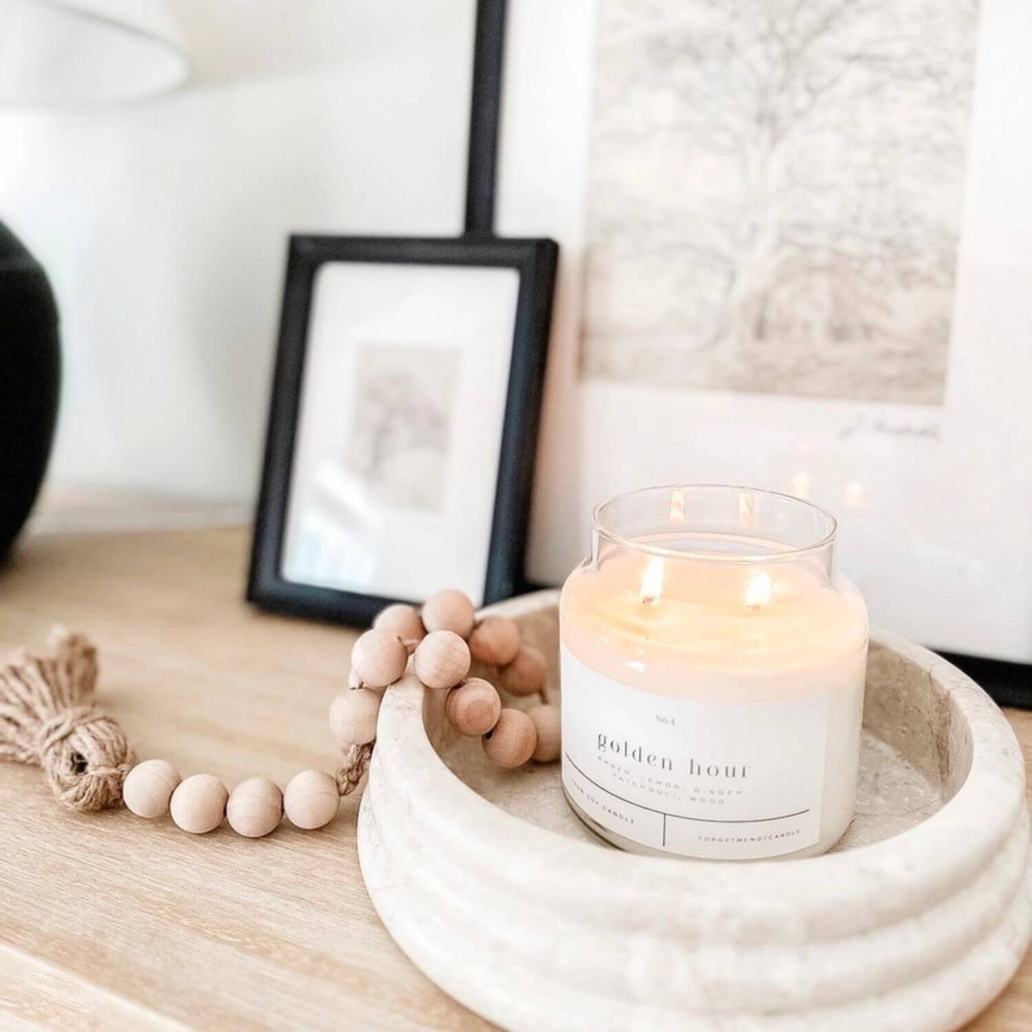 Immerse your space in the sophisticated blend of zesty citrus, invigorating ginger, and warm amber, infused with pure essential oils for a clean, uplifting burn. This candle fills your home with a luxurious aroma, perfect for creating a serene ambiance after a long day. Just like the golden light of sunset, its comforting fragrance wraps around you, bringing a sense of warmth, relaxation, and effortless elegance to any space.