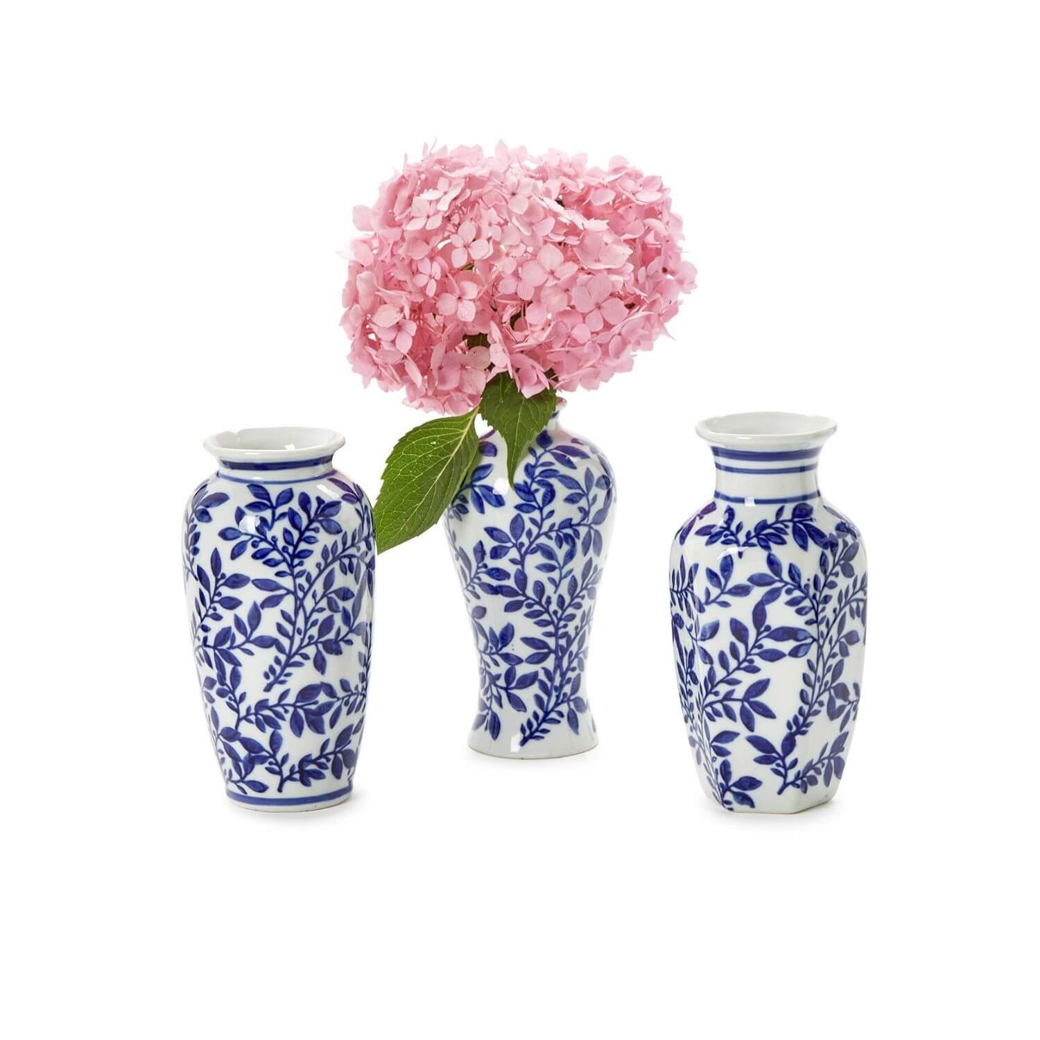 Add a touch of classic sophistication to your home with these hand-painted Chinoiserie vases. Crafted from delicate porcelain, each vase features intricate hand-painted details, making every piece truly one of a kind. The timeless blue and white palette complements any décor, while the varying heights create beautiful depth and dimension in any space. Whether styled together as a statement trio or placed throughout your home for a cohesive look, these vases bring effortless charm and refined beauty to any setting.