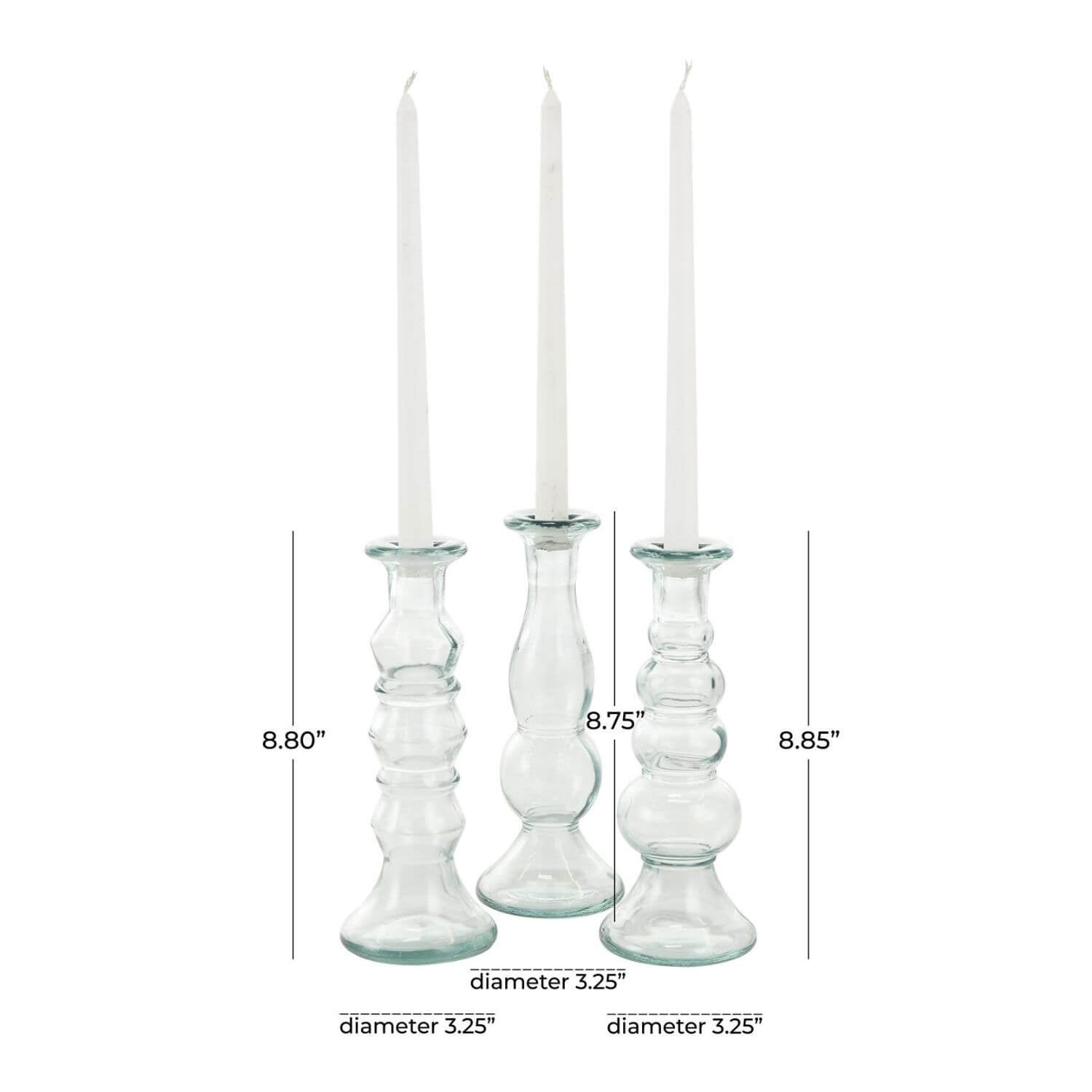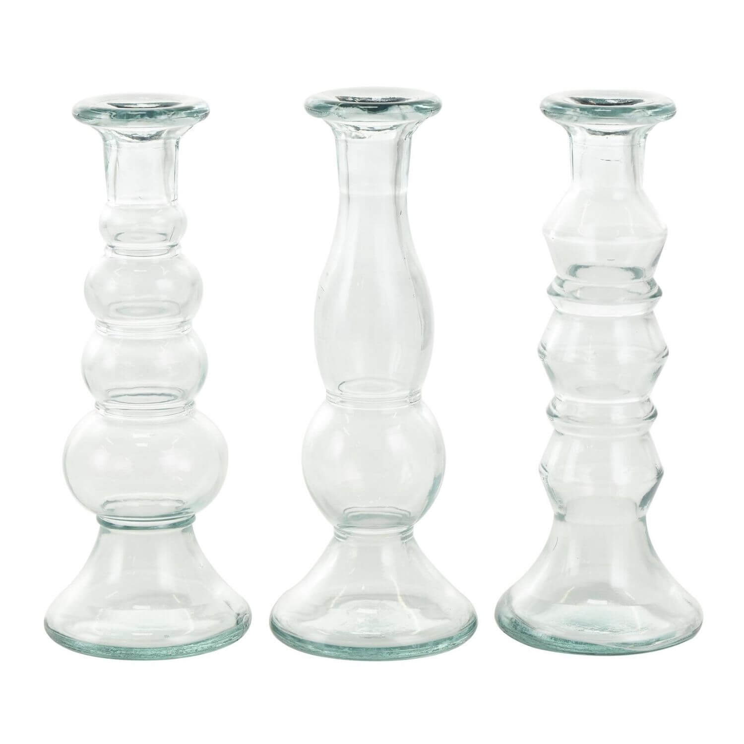 Handblown from recycled glass, our Harborlight Candle Holders feature three distinct silhouettes, each with a gentle green-blue tint that evokes ocean-inspired calm. Ranging from 8.75" to 8.85" tall, their soft transparency, subtle curvature, and sculptural design make them a refined addition to any room. Sustainably crafted with slight variations in shape and tone, each piece carries the character of true artisan work - no two are exactly alike.
