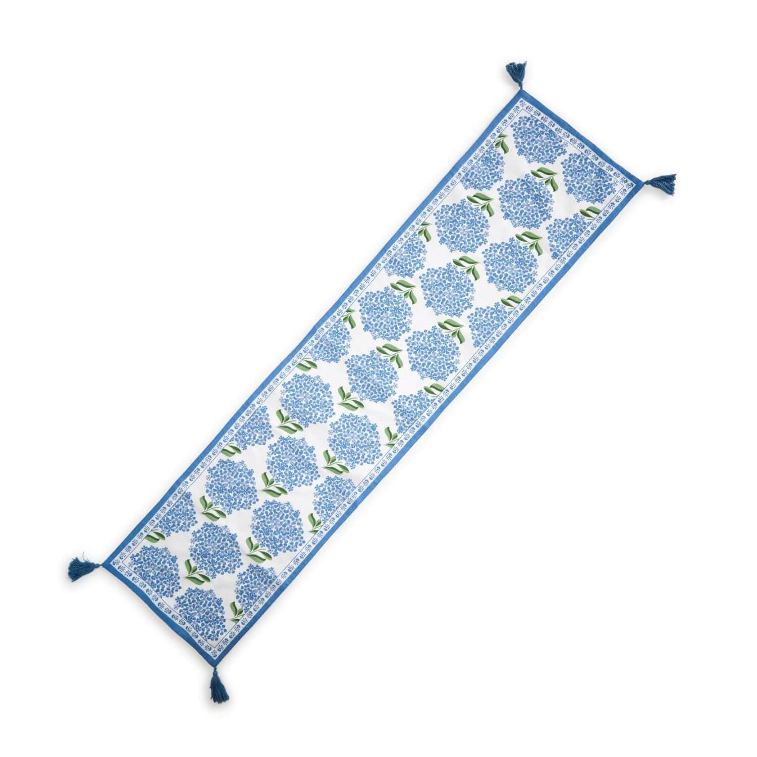 Transform your dining space with this charming hydrangea table runner. Featuring a pattern of blue hydrangeas with tassel accents at each corner that makes your table setting elegant. Perfect for daily use, holiday and special events celebration.