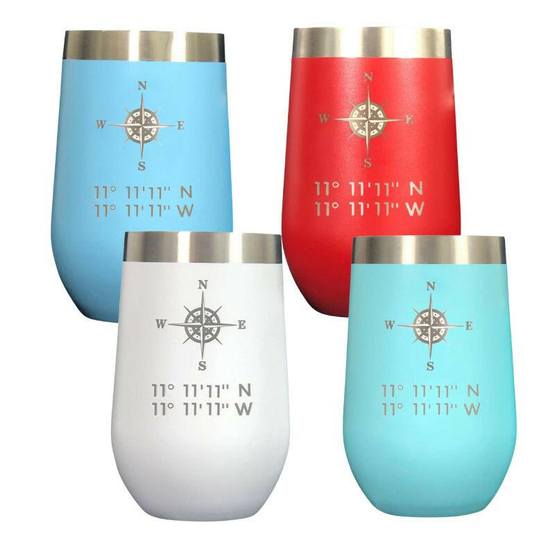 Soon to be your favorite tumbler! Hot or cold, it doesn't matter. Make it uniquely yours; these high endurance polar tumblers are precision engraved with your choice of nautical design, plus the latitude and longitude of any location in the world.