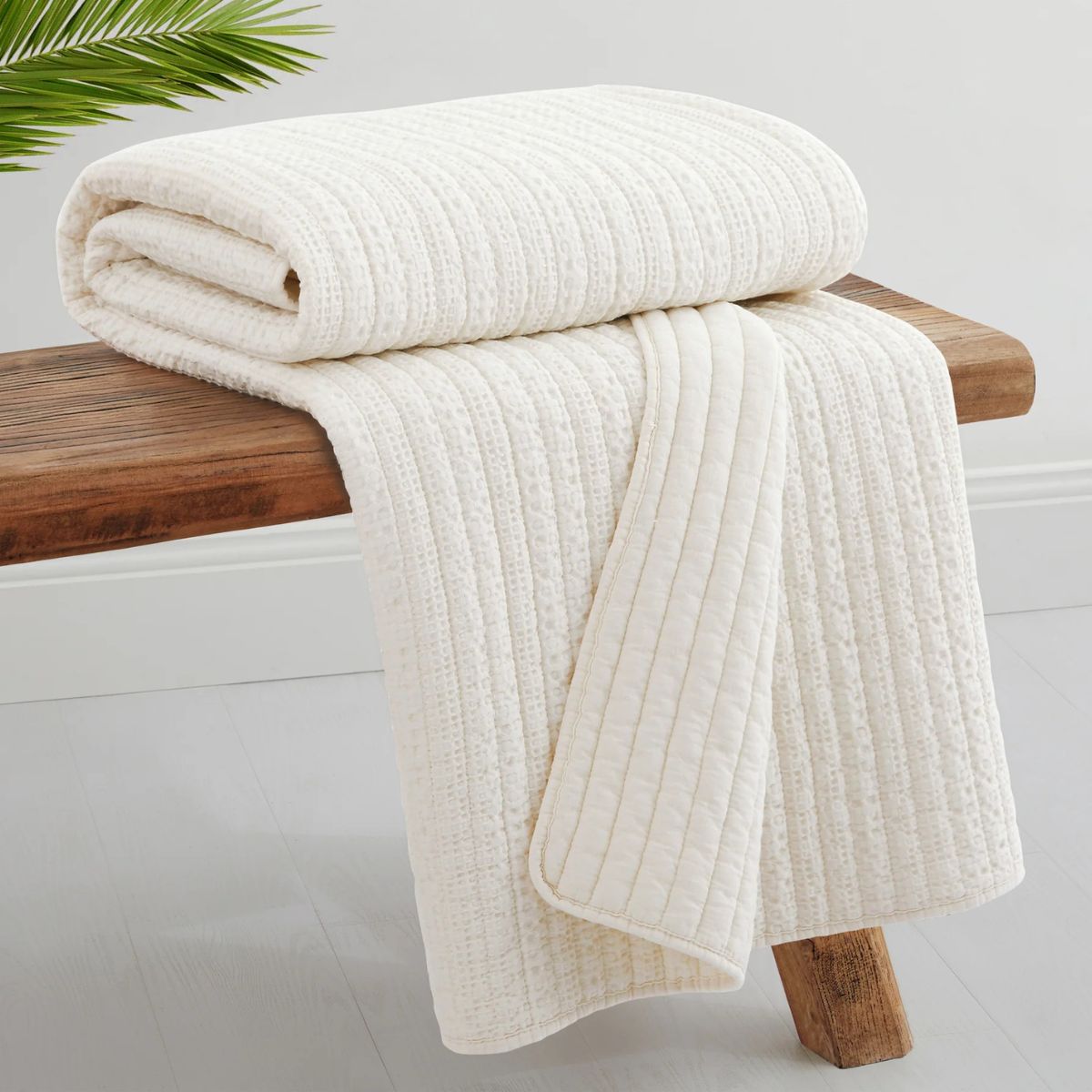 A softly textured quilted throw with subtle stitching that feels calm, modern, and easy to live with.