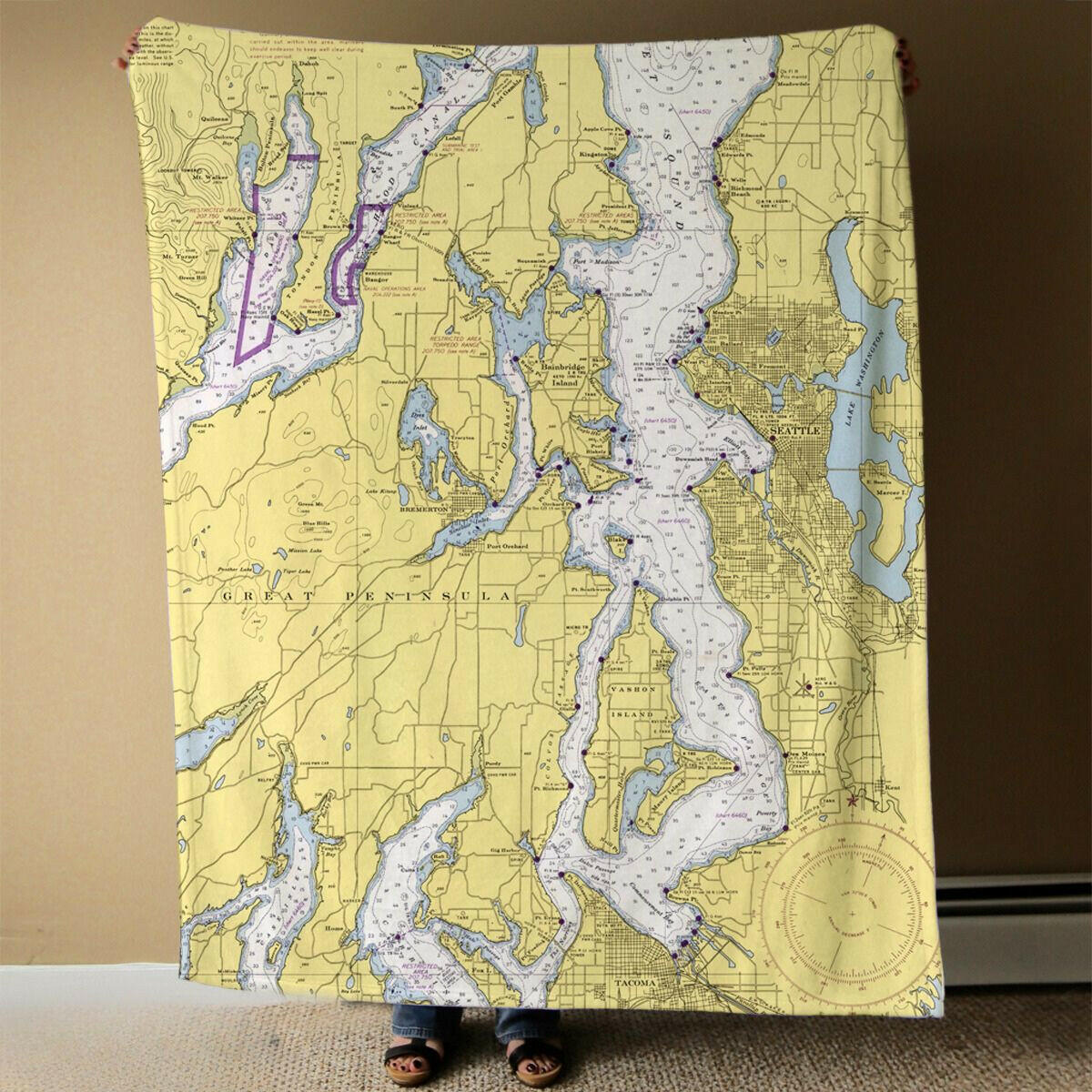 Sail back in time with a vintage nautical chart on one side - it's like a piece of history you can snuggle with! And when it's time for a wash, don't worry; our blanket is low-maintenance. Just toss it in the machine on a gentle cycle, hang it to dry, and it's ready for your next maritime escape.