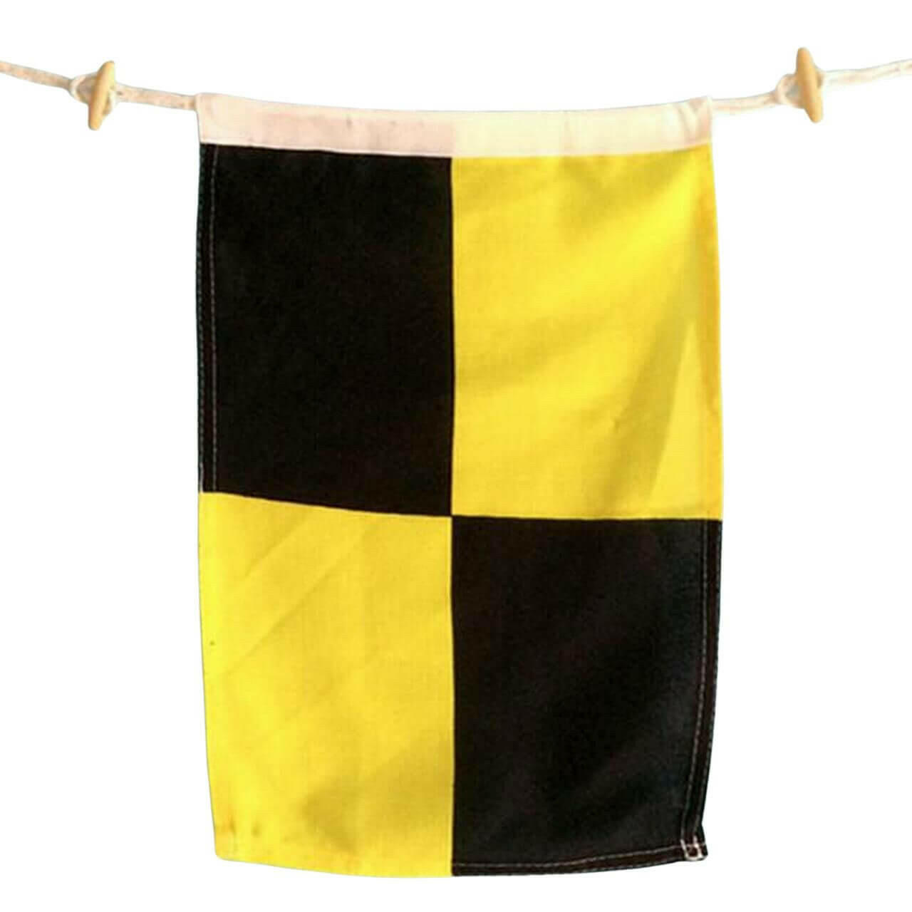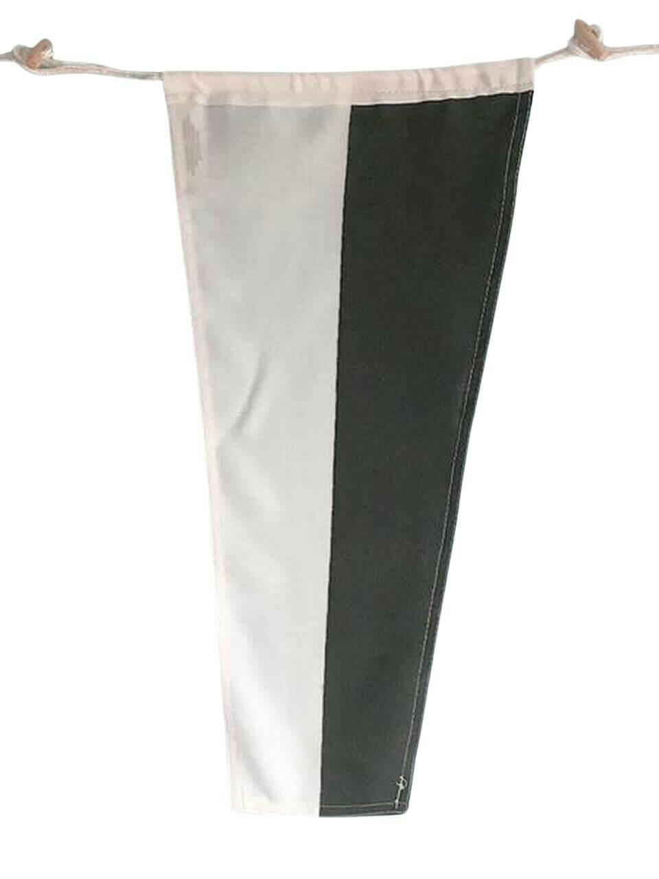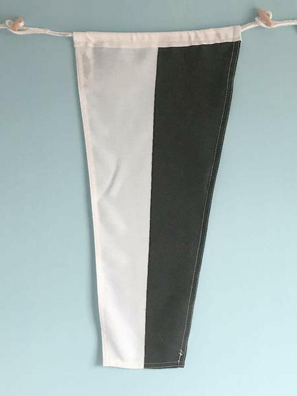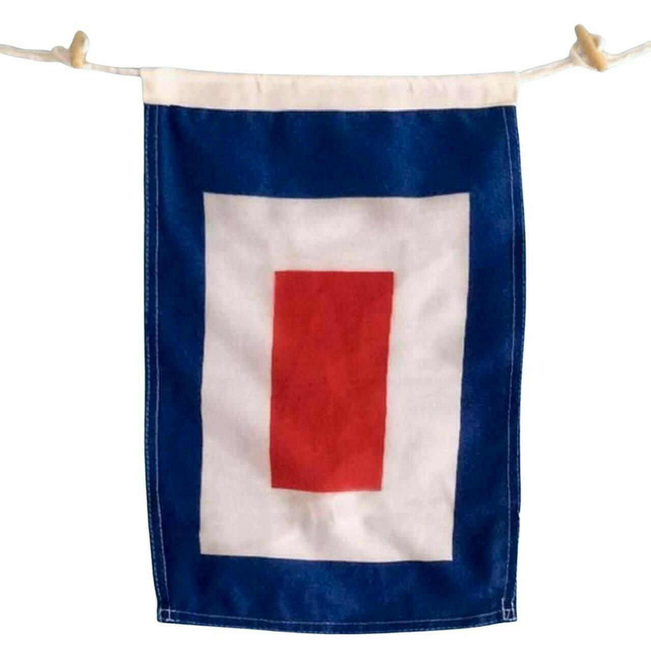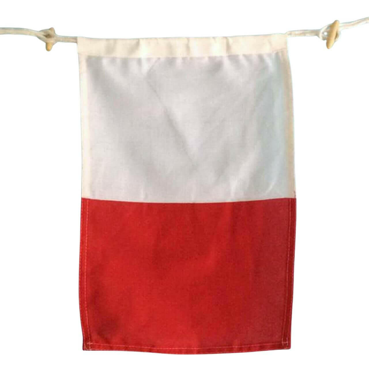 Each poly-blend 10" x 15" nautical letter flag is suitable for indoor or outdoor use. Makes a perfect flag letter for boats. Features a high quality double stitch construction, plus wooden toggle buttons and cordage loop (approximately 1" on each side) to make it easy to string together and hang your creation.