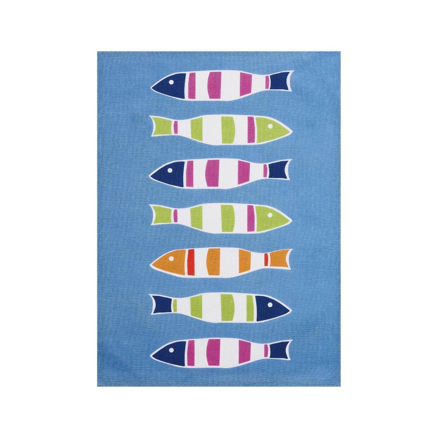 Add a splash of playful coastal charm to your kitchen with the Picket Fish Towel, featuring Kate Nelligan’s iconic hand-screen-printed design. A lineup of cheerful striped fish swims across a soft blue cotton canvas, capturing the whimsy of life by the sea.