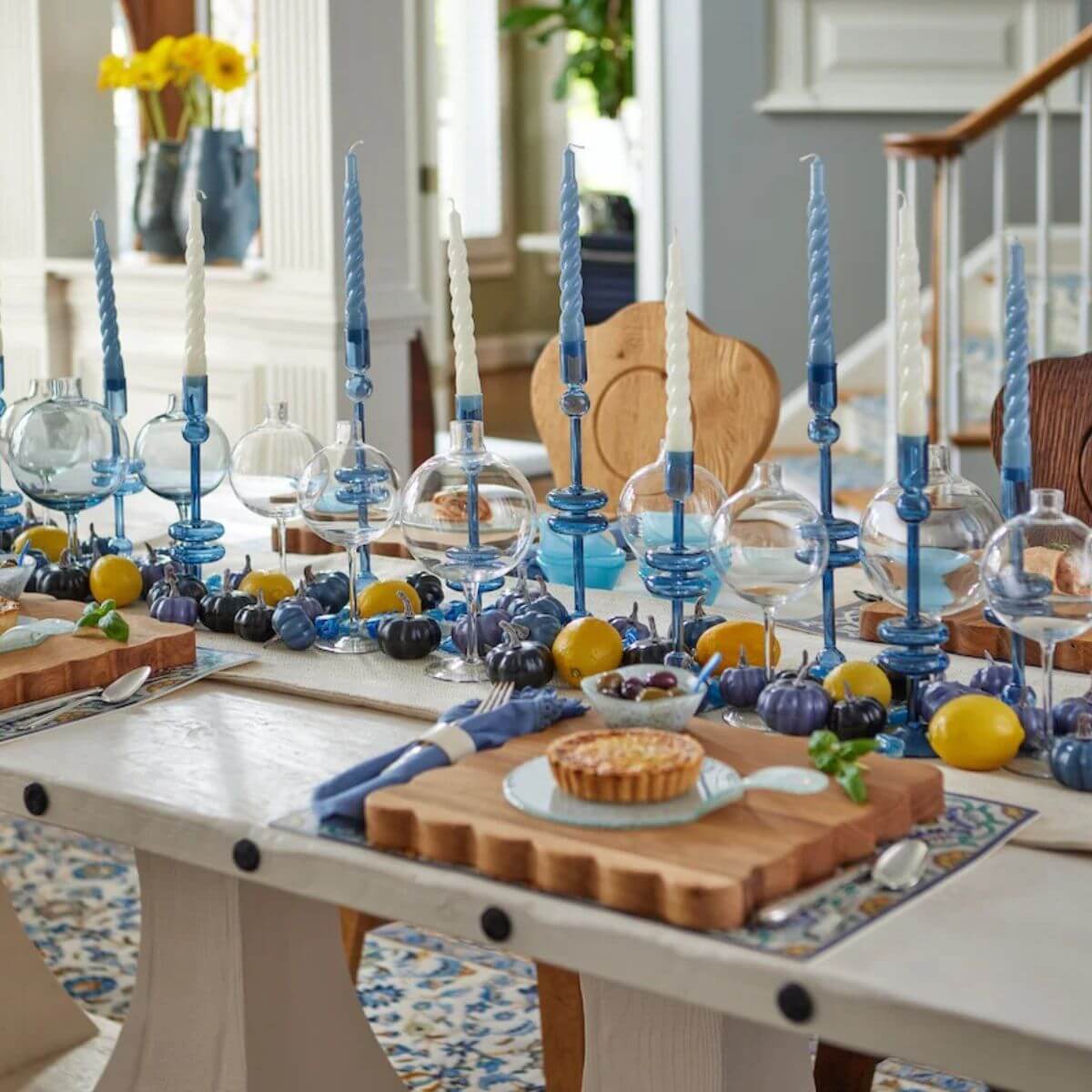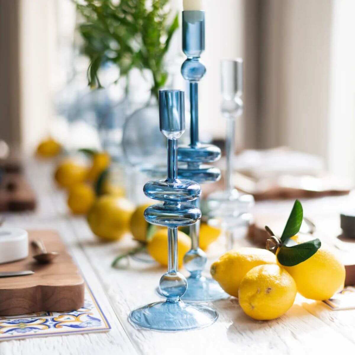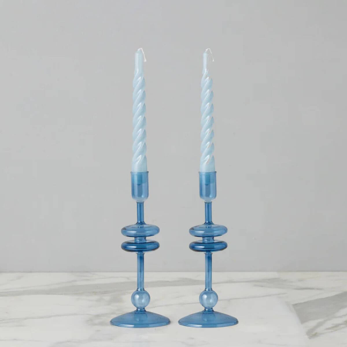 These glass candlesticks are the kind of small touch that makes a big impact. Handcrafted in rich sapphire blue, they reflect the light beautifully and add color and warmth to your space. From weeknight meals and holiday parties to quiet nights at home, they give your table a clean, coastal look that feels relaxed yet refined.