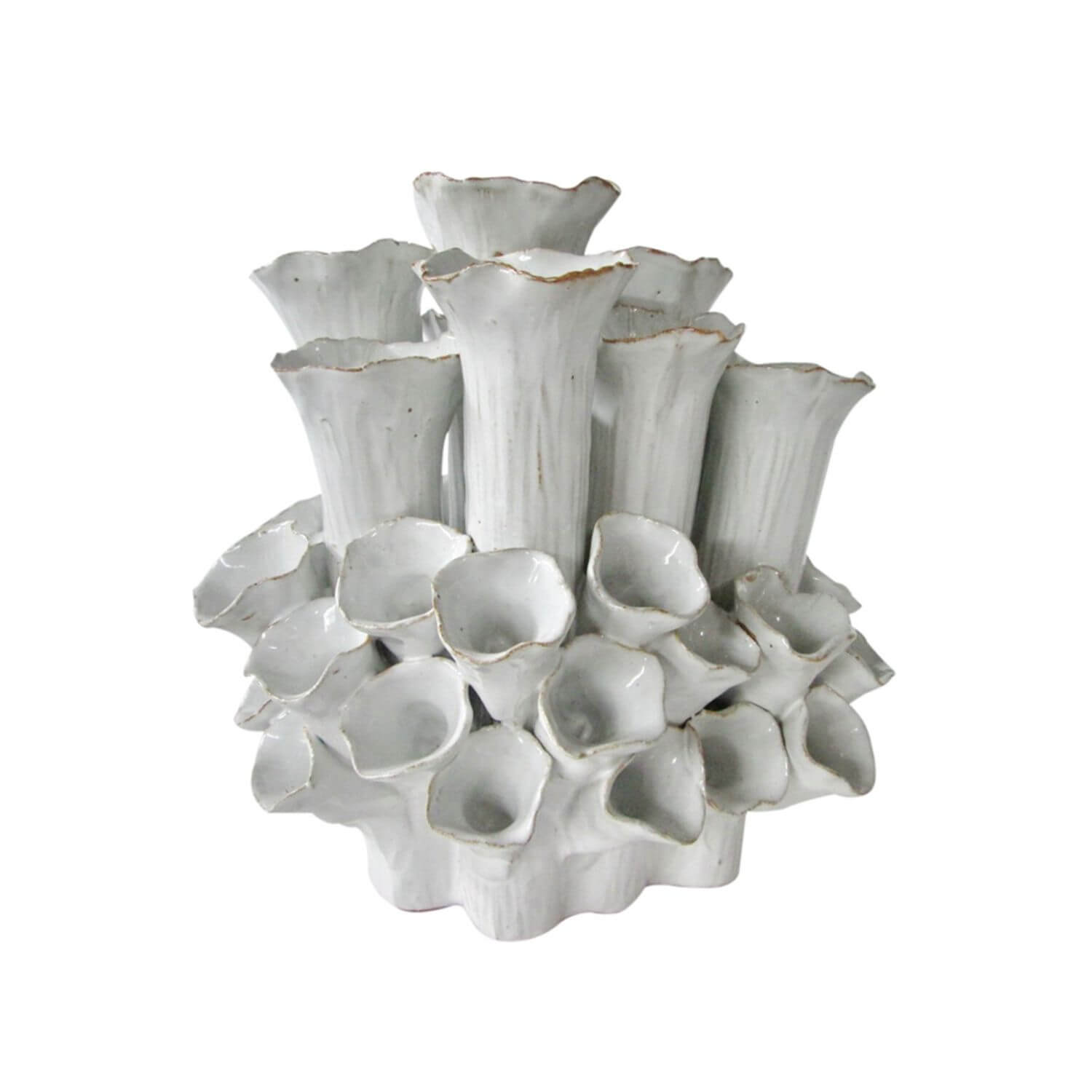 Bring sculptural coastal beauty into your home with the Sea Flowers White Thai Ceramic Vase, a one-of-a-kind piece handcrafted by skilled artisans. Inspired by the ocean coral and blooming flowers, this vase is finished in a glossy white glaze with hand-sculpted details that offer a luxurious yet understated elegance that enhances any space. Whether used as a centerpiece or a decorative accent, this piece instantly elevates your home.
