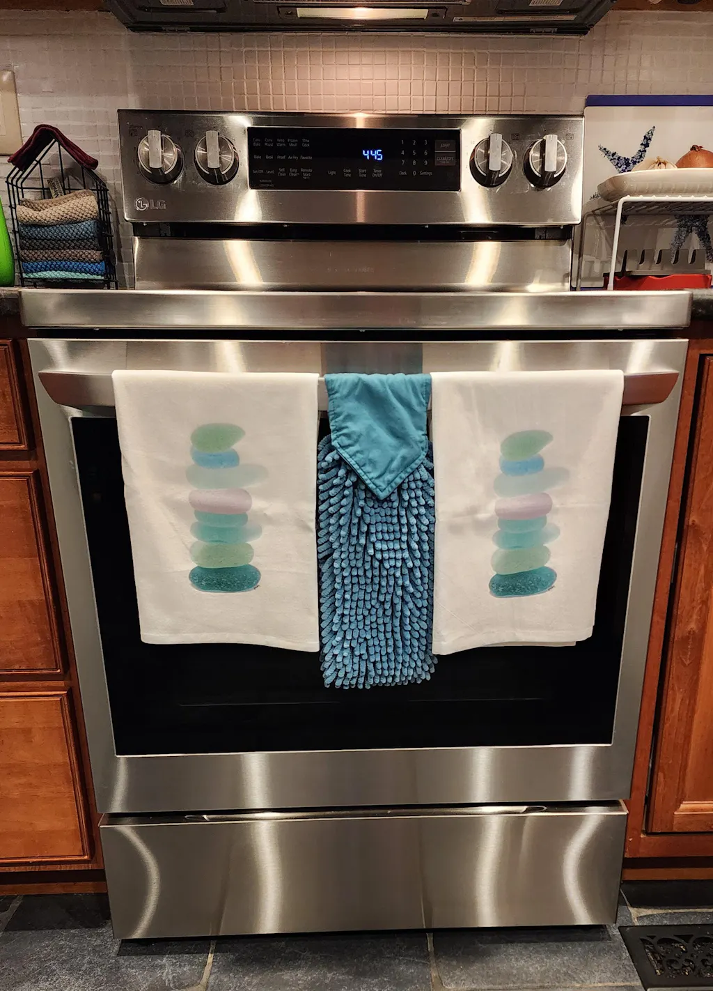 Bring a coastal charm into your home with the Sea Glass Stack Towel, a stunning blend of function and seaside elegance. Featuring a stack of sea glass in soothing hues of aqua, mint, and turquoise, this towel elevates everyday use to a beautiful seaside experience.
