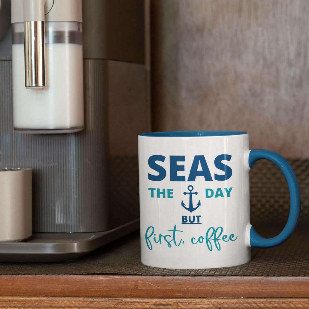 The Seas the Day coastal coffee mug is 11 oz., and is carefully packed and shipped so it's ready to be given as a unique coastal gift for birthdays, housewarming parties and other special occasions.