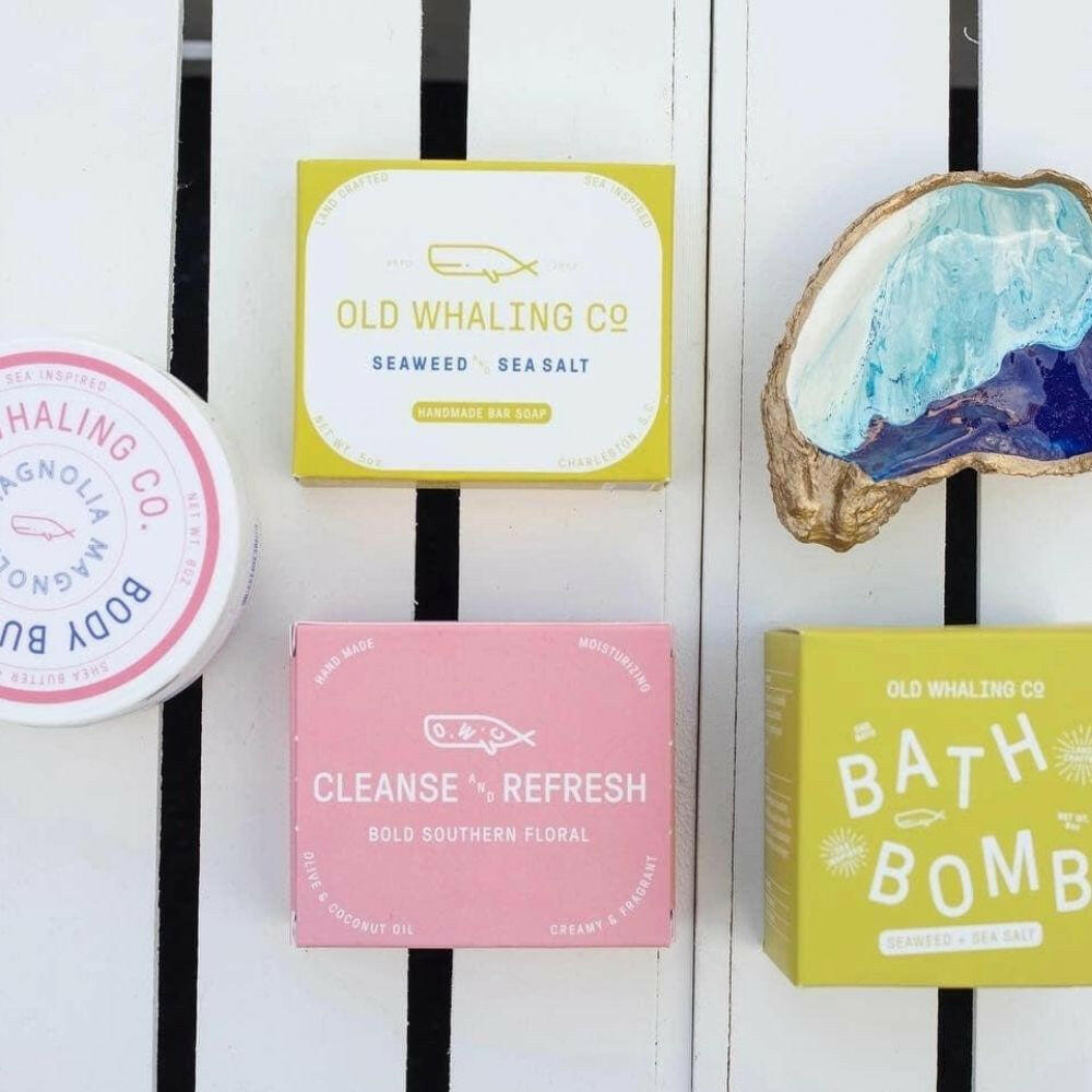 Step into the serenity of the ocean with every wash using our Seaweed & Sea Salt Bar Soap. Made with natural kelp powder and granules, the soft beige color, with natural exfoliants, resembles the sands of your favorite beach, gently scrubbing away the day’s stress while nourishing your skin.