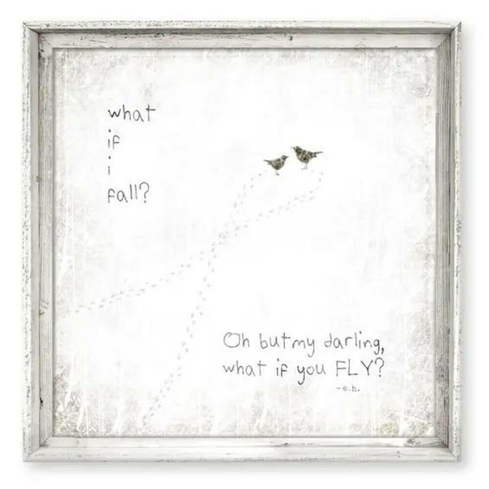 "What if I fall? Oh, but darling, what if you FLY?" is charmingly encased in a rustic, reclaimed wood frame with an antique white finish. This coastal piece complements the soft, natural hues of beachy interiors.