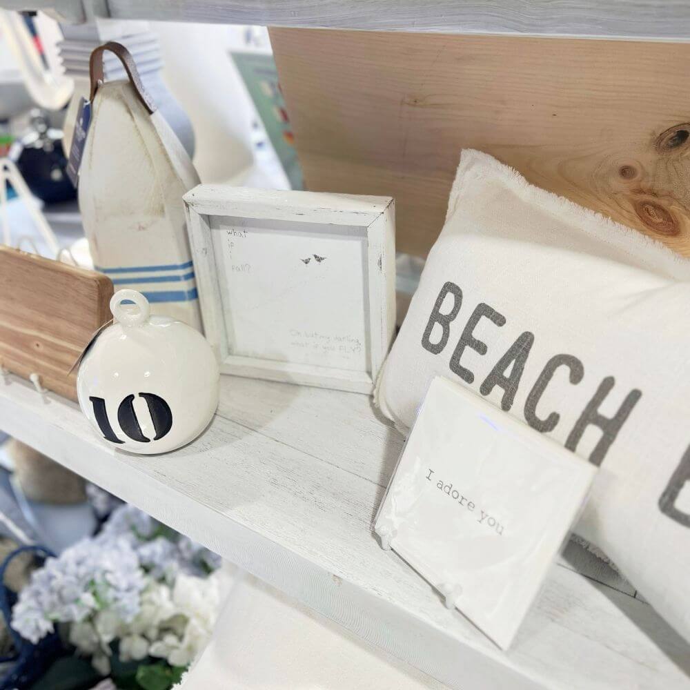 "What if I fall? Oh, but darling, what if you FLY?" is charmingly encased in a rustic, reclaimed wood frame with an antique white finish. This coastal piece complements the soft, natural hues of beachy interiors.
