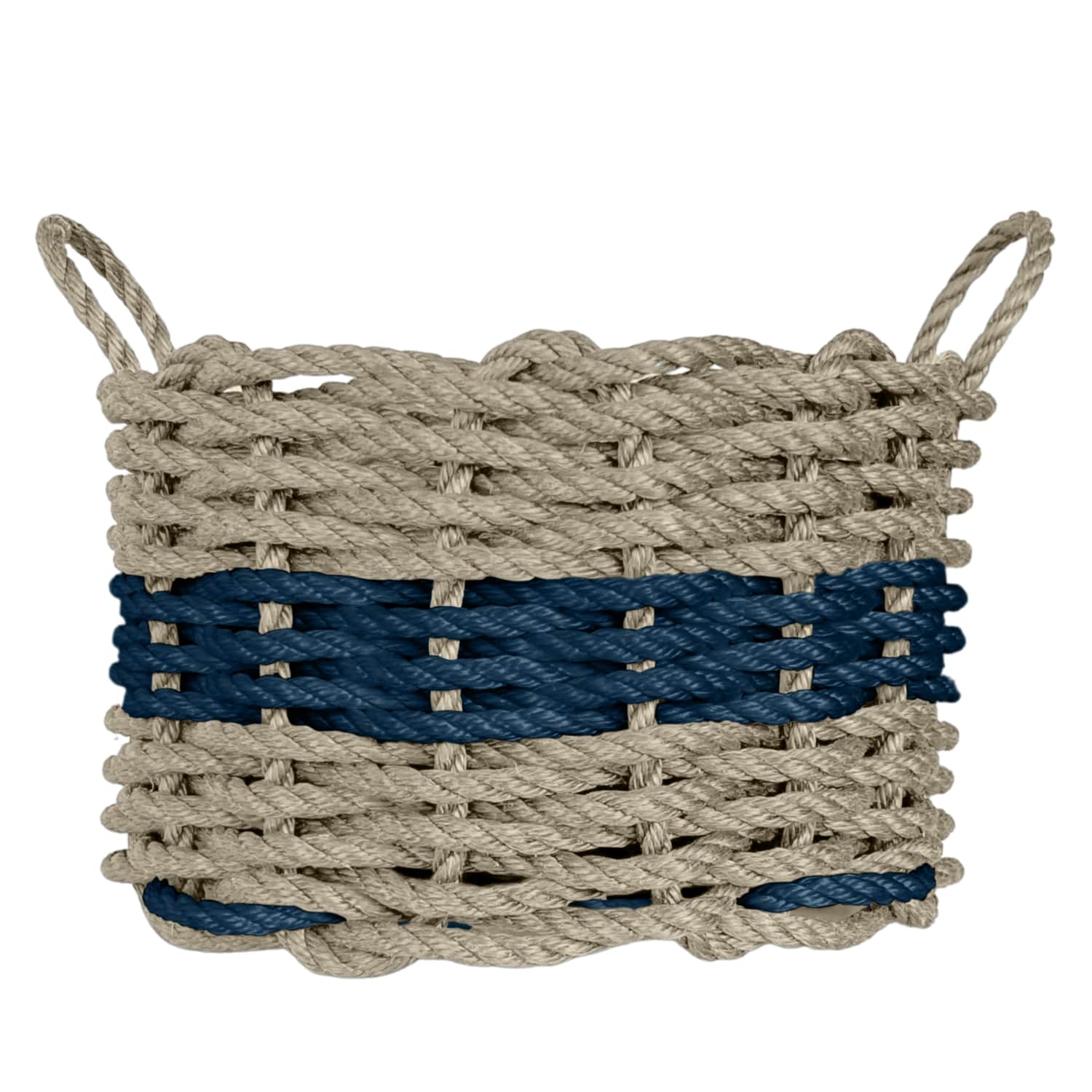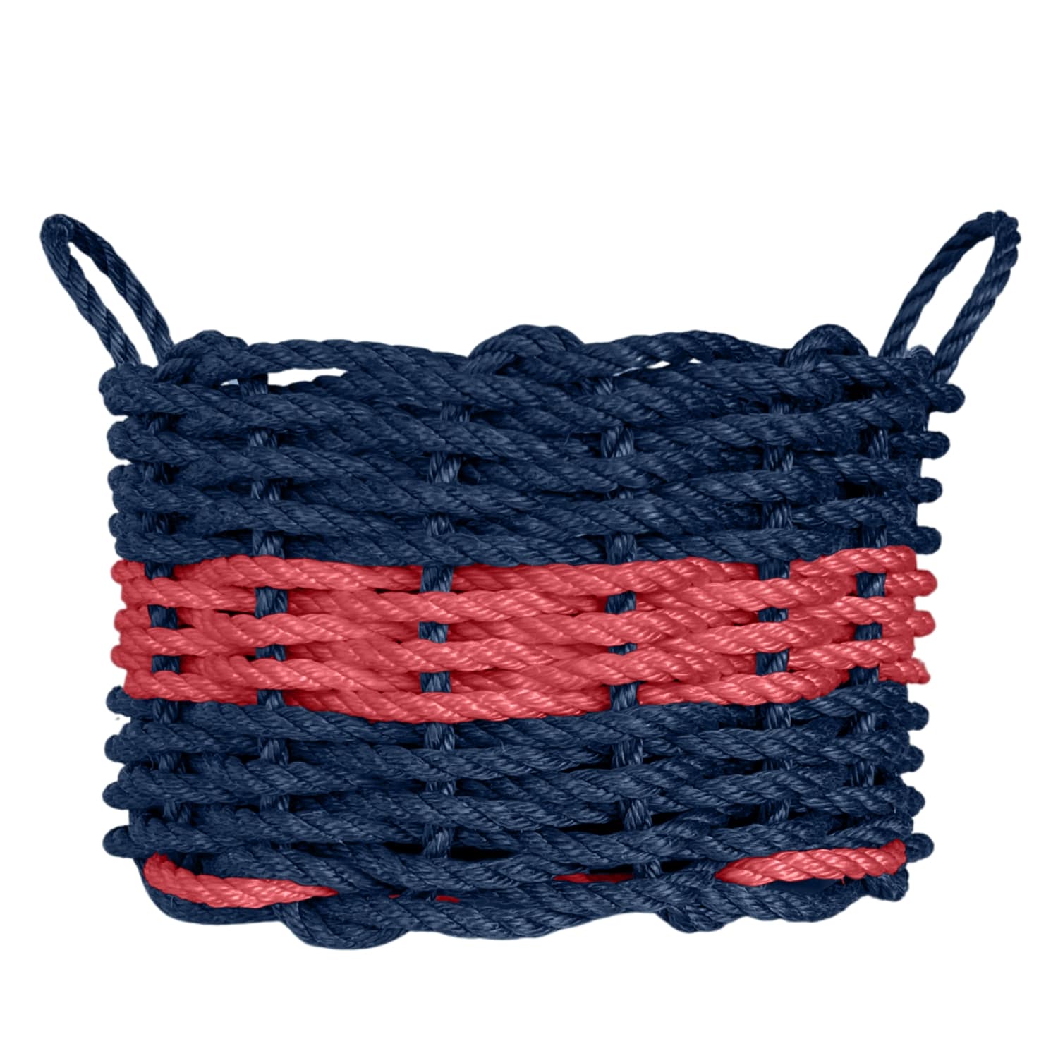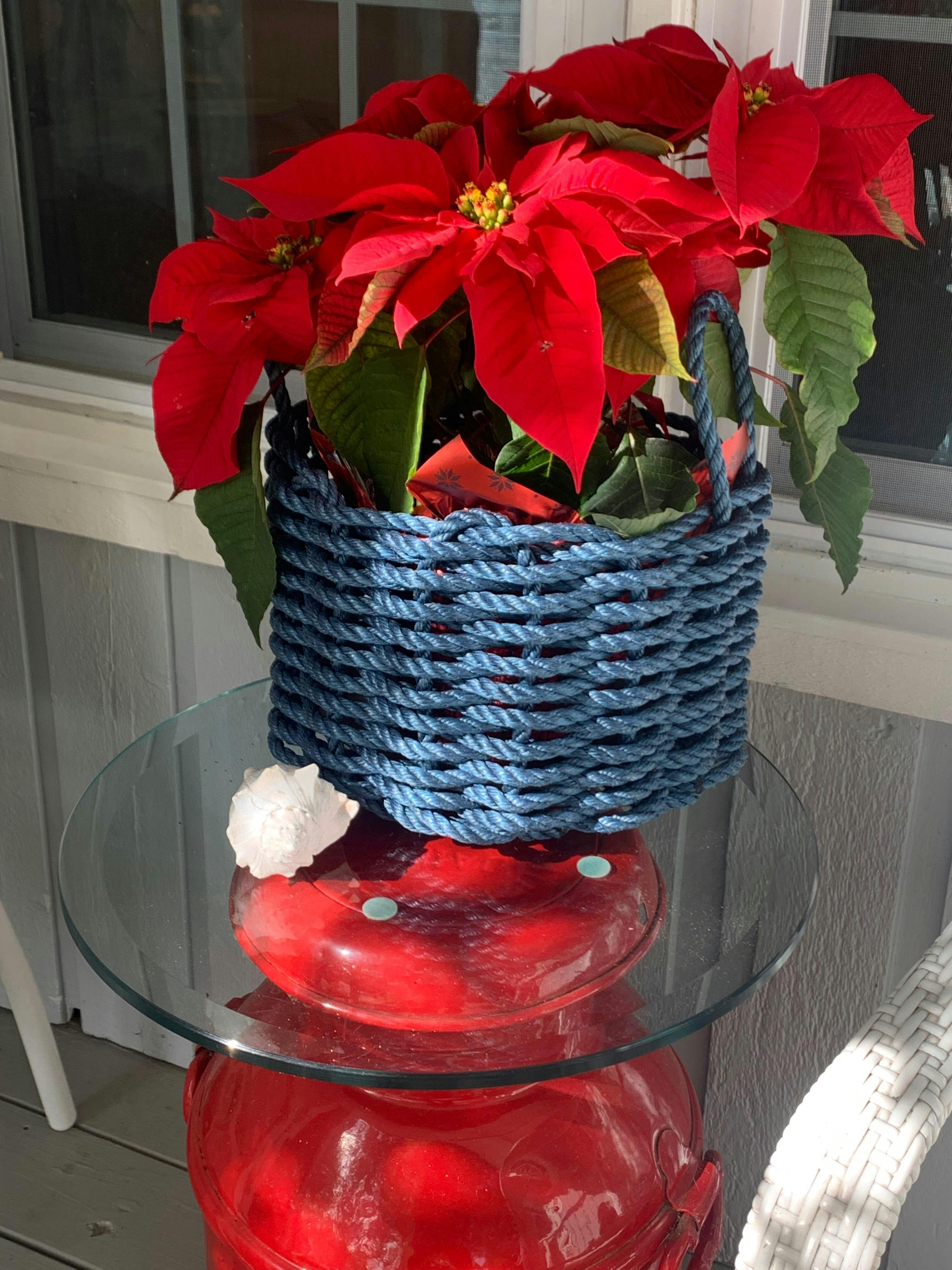 Handwoven from super tough new polysteel rope in a variety of cheery colors, which is even stronger than regular polypropylene rope, these nautical rope baskets are perfect as a planter, caddy, magazine holder or shelf accent. Use a Lobster Rope™ Basket on picnics, at the beach, or for boat keys - the creative ideas are endless. Water, mildew, and mold resistant. Designed to withstand tough weather. Measures 12" x 8". Each Lobster Rope™ Basket includes a sturdy chipboard base. Made in Maine.